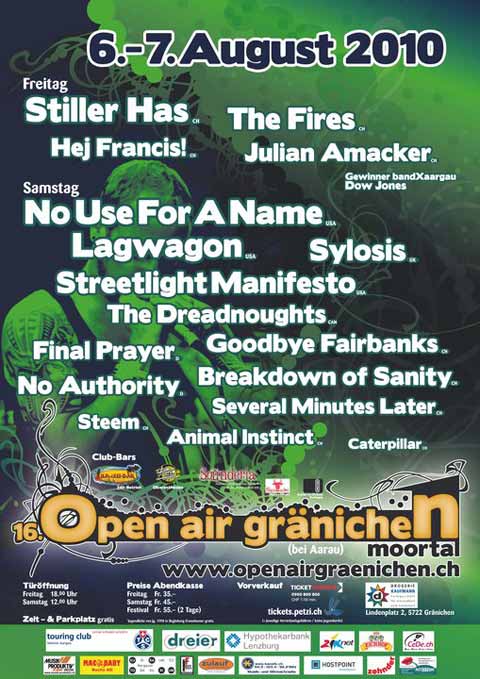Wir spielen am Openair Gränichen 2010 und zwar zur besten Zeit;-)!!!