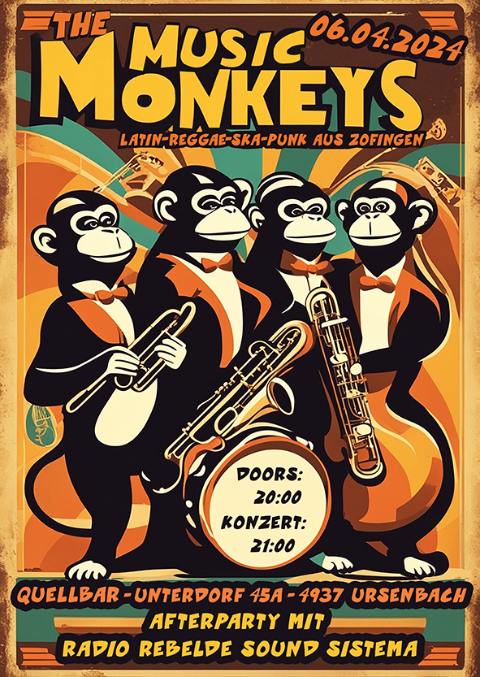 «The Music Monkeys» sind zurück in Aarau!!! Zuletzt mit The RudeTins im Wenk und im Flösser unterwegs, werden sie am Skaarau erneut für heisse Stimmung und wackelnde Hinterteile sorgen.